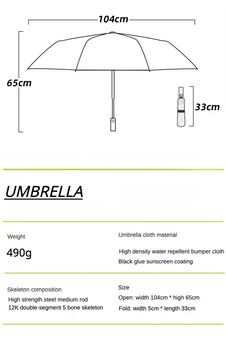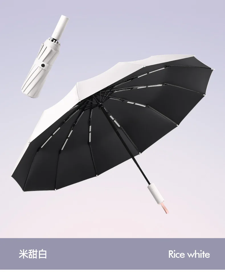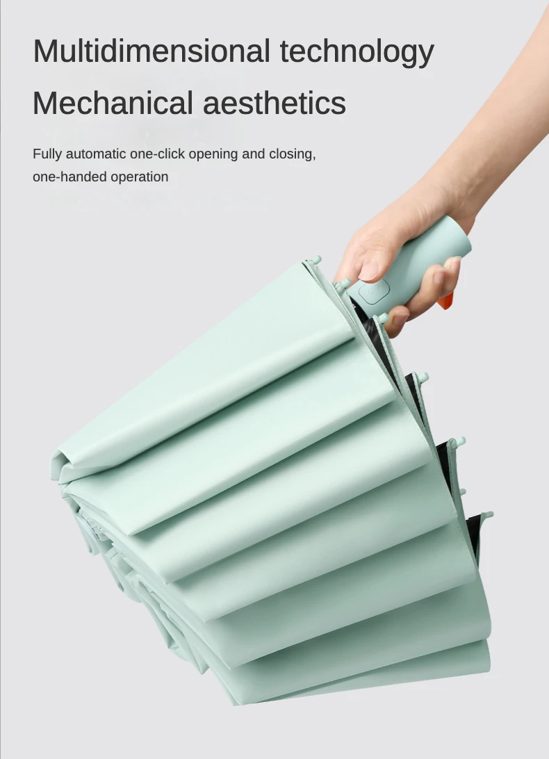 Em comparação com o guarda-chuva triplo tradicional, a área da superfície do guarda-chuva aumenta em 10%, aumentando a área de proteção solar e proteção contra chuva.
